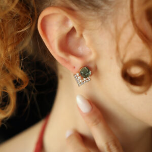 925 Sterling Silver Baguette Stone Earring, 15mm in Diameter, Weighs 2,41 grams, It will be sent with a gift box.