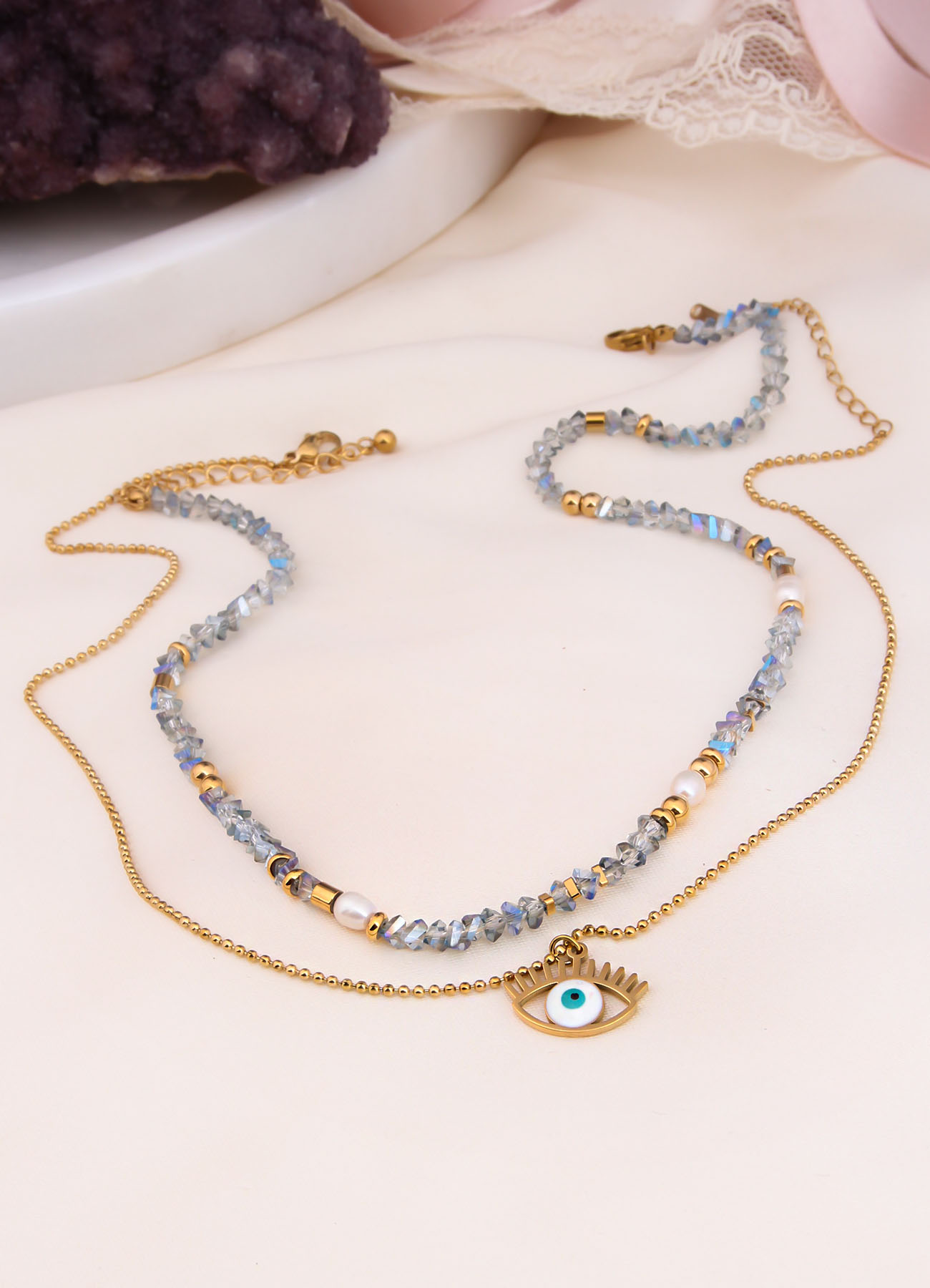 De véritables pierres naturelles sont utilisées dans nos conceptions. Revêtement spécial contre les allergies et le ternissement. Il sera envoyé avec une boîte cadeau.